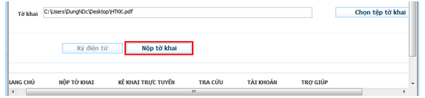 Đăng nhập nhantokhai.gdt.gov.vn bằng trình Internet Explorer 7 hoặc 8, chọn NỘP TỜ KHAI -> Nộp tờ Khai -> Chọn Run để hoàn thành đăng nhập. Trong mục nộp hồ sơ kê khai thuế -> chọn tệp tờ khai -> chọn file PDF -> Open.